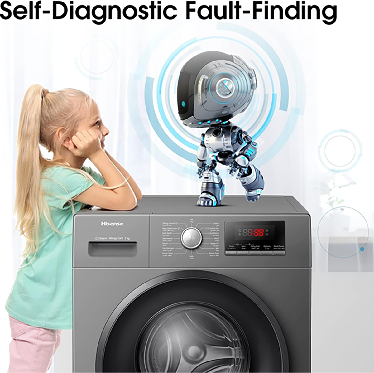 Hisense steam care technology releases massive amounts of steam from the bottom of the inner tub quickly and removes the allergen in clothes to ensure the items are healthy.