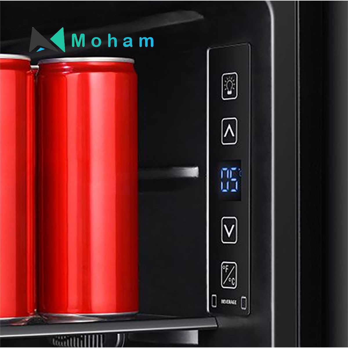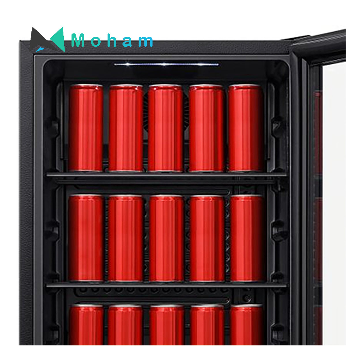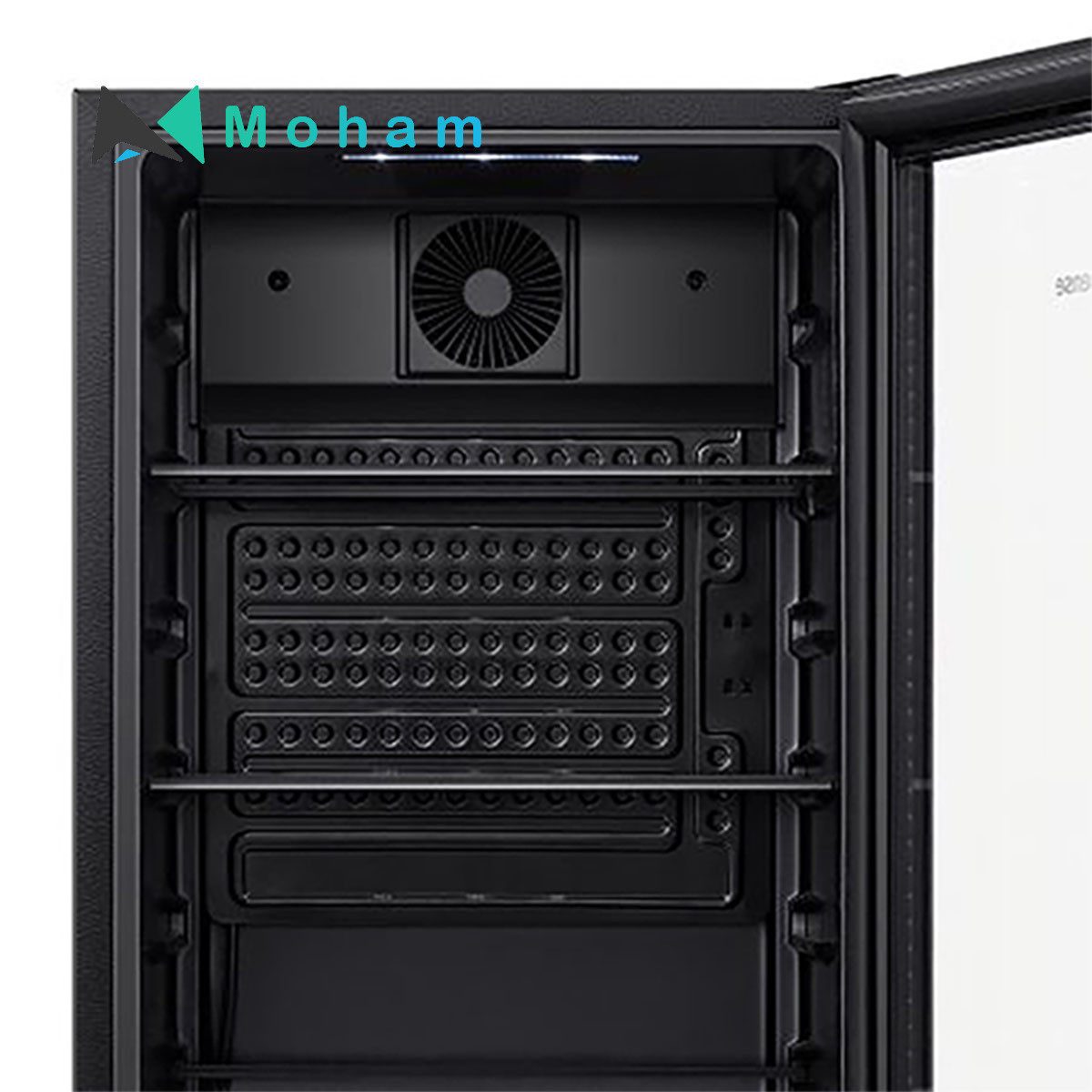 – 122L, 69 cans, 113 Bottles Beverage Cooler – Glass Door, Recessed Handle, Interior light, Digital control – Single Temperature Zone – Adjustable Shelves, Color: Black, Product Dimension HxWxD mm: 835x448x475