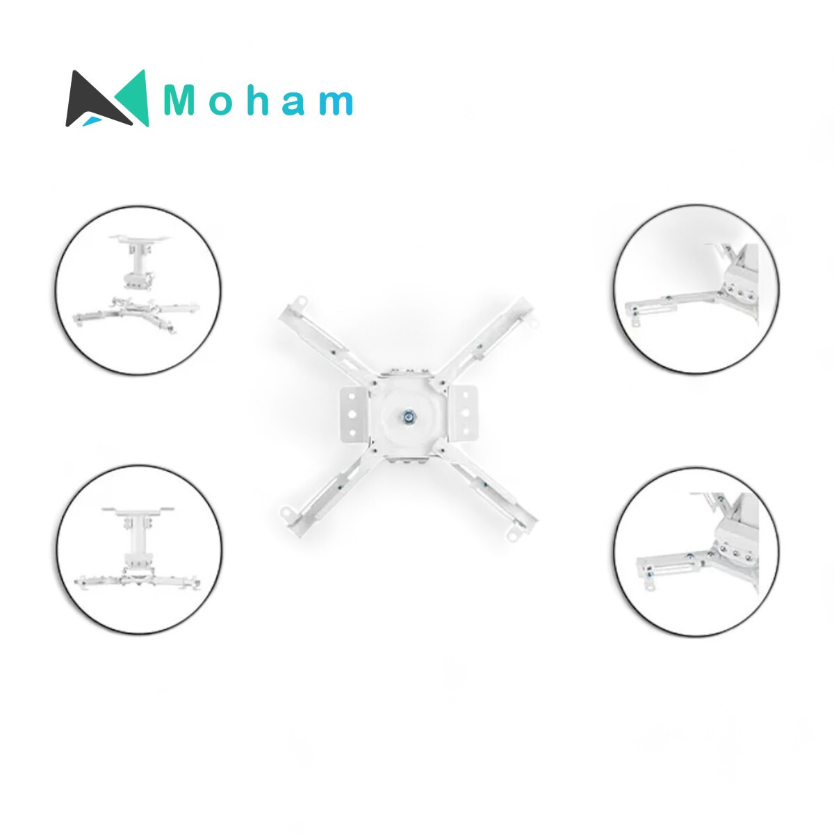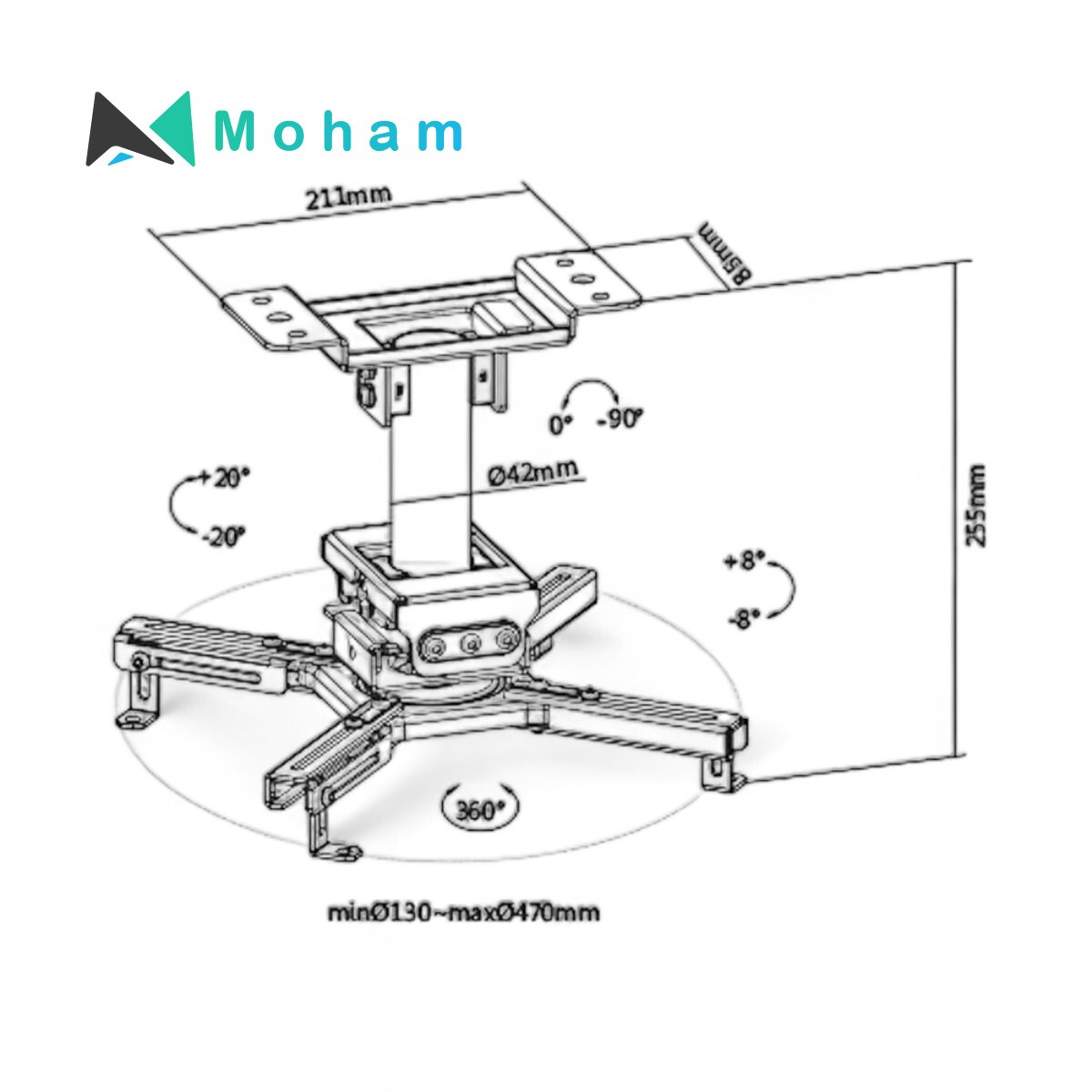 The SH 07P Solid Ceiling Projector Bracket is a dependable and versatile solution for mounting projectors in various settings. Crafted from durable steel and plastic materials, it offers robust support and stability for your projector. Available in both Matte Black and Matte White finishes, this bracket seamlessly blends into any interior decor.With dimensions of 470x470x255mm, this projector bracket provides ample space and flexibility for mounting your projector. It boasts a weight capacity of 45kg, ensuring it can accommodate a wide range of projector models. The mounting range, spanning from 130mm to 470mm, allows for customizable positioning to achieve the ideal projection angle and distance.Additionally, the bracket offers extensive adjustability features, including a tilt range of +20° to -20°, a swivel range of +8° to -8°, and a rotation capability of +180° to -180°. This wide range of motion allows for precise adjustments, ensuring your projector's image aligns perfectly with your screen or surface.The bracket's extension range of 255mm provides flexibility in projector placement, enabling you to achieve the desired projection distance from the ceiling. Installation is straightforward, thanks to its ceiling-mounted design, and the included cable management system helps keep your setup organized and clutter-free.