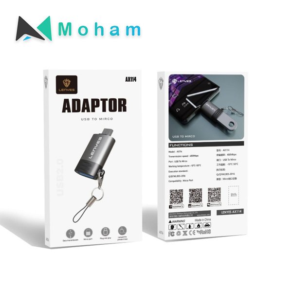 Lenyes AX114 converter adapter otg usb to micro plug and play