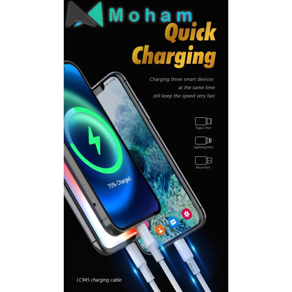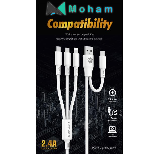 LC945 6 in 1 Multi Cable Fast charging, 1.2M white, Support all kinds of mobile