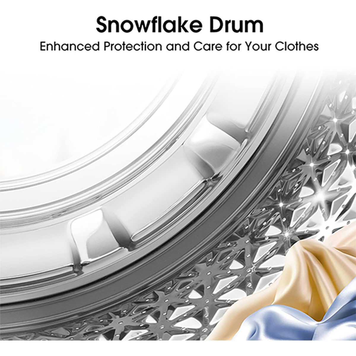 The snowflake shape drum design will wash your clothes cleaner, as well as provide enhanced protection and care for your clothes.