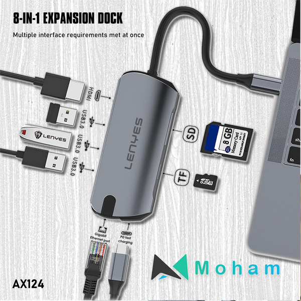 LENYES TYPE C HUB AX -124 8 IN 1