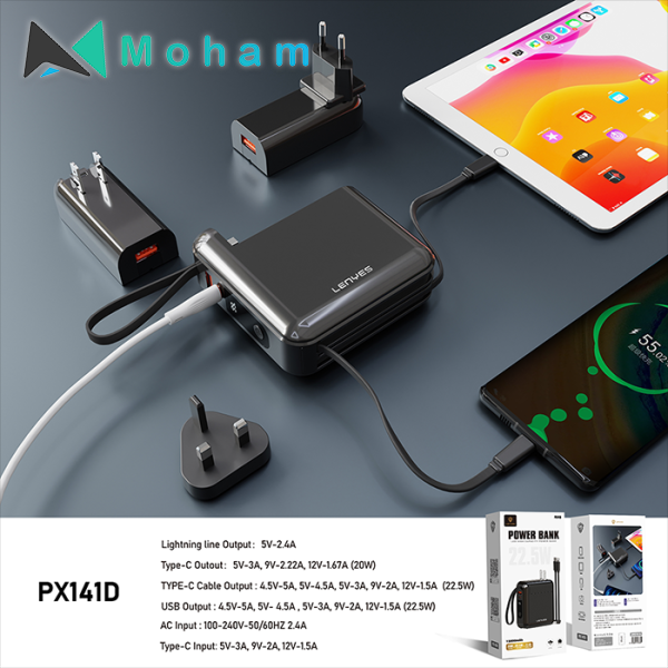 • TYPE-C Cable Output: 4.5V-5A, 5V-4.5A, 5V-3A, 9V-2A, 12V-1.5A (22.5W)