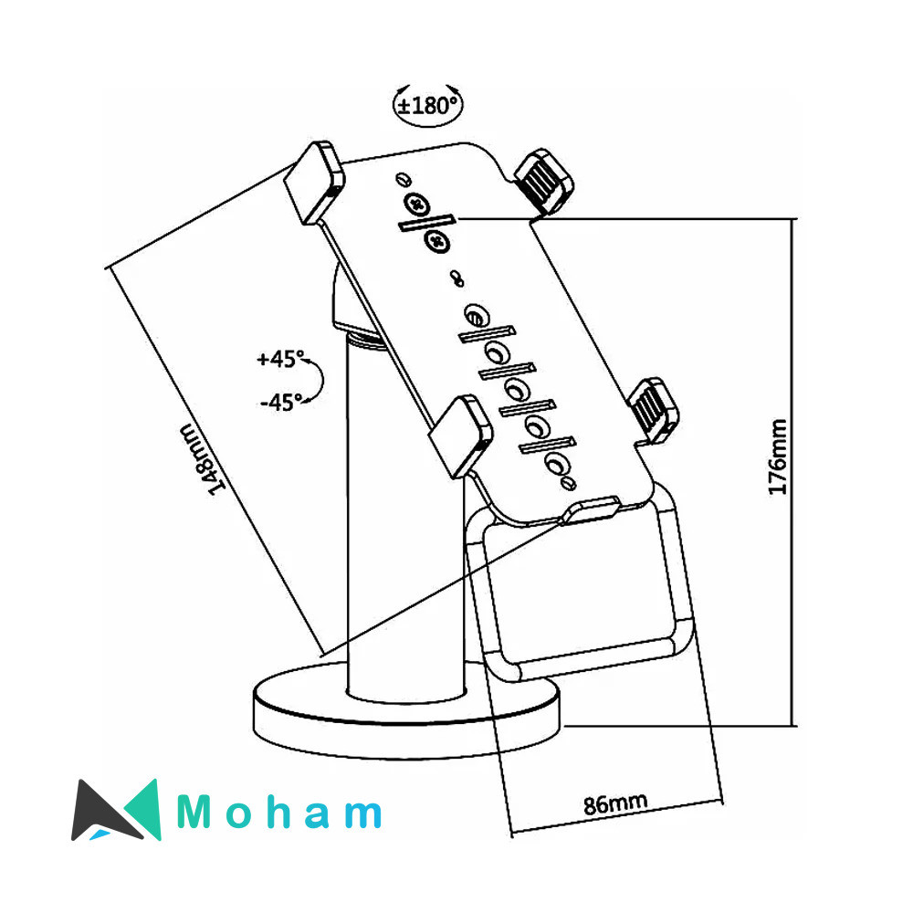 If you are looking for a fully adjustable POS mounting solution for your VeriFone® VX 810, do not miss Skill Tech’s SH 005PS, with the multi-angle adjustment and the user-friendly handle, the payment process will be more effective and easier for both customers and salesmen. You can install the stand easily on your desk and cable management design will ensure its neat appearance. Silicone Pads provide solid grip and stability as well. Best of all, our product will help you avoid all the cable damage, false tampers and criminal interference. Freshen up your check-out and don’t hesitate to get our SH 005PS.