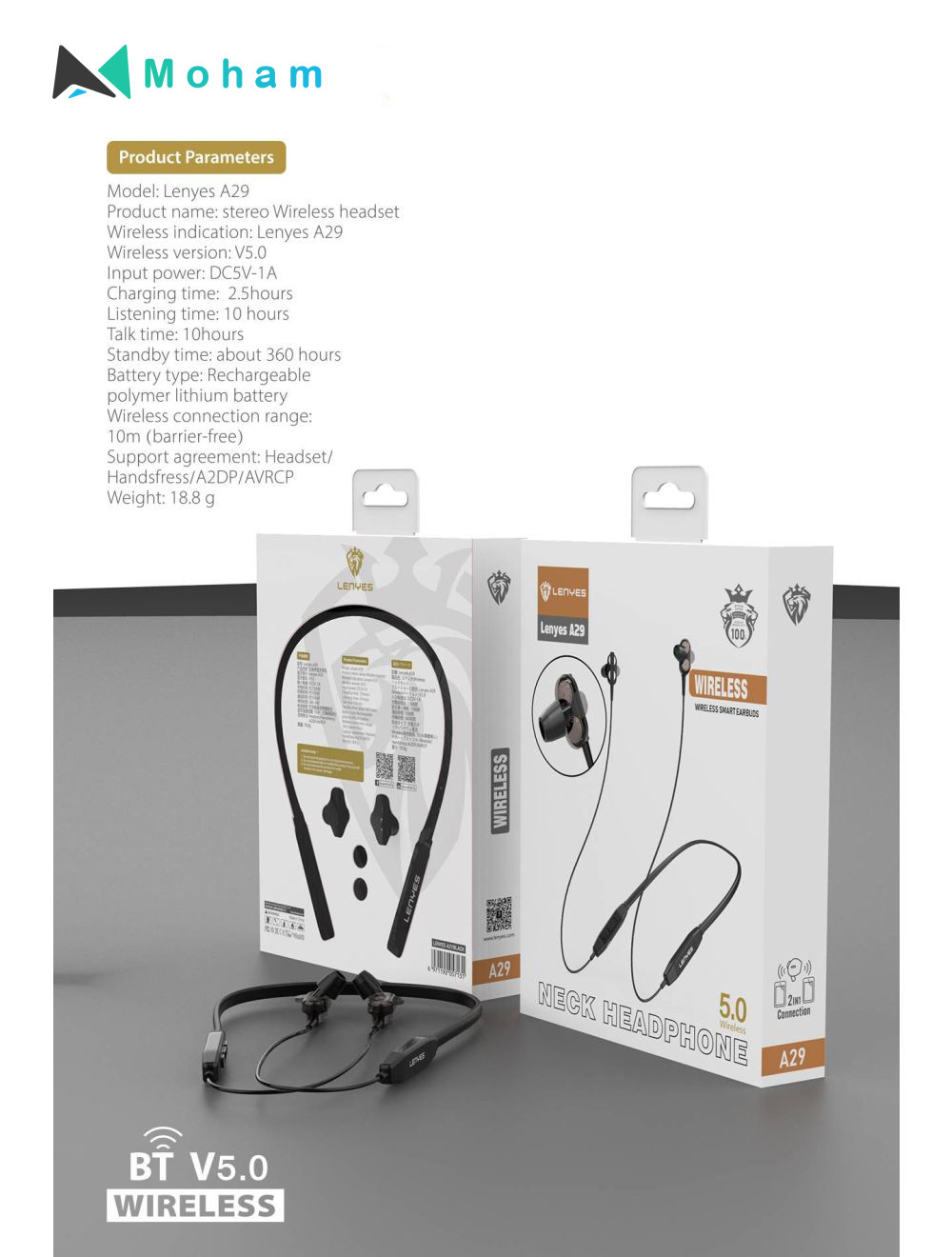 ● Bluetooth:5.0 ● Listening time:10 Hours ● Talk time:10 Hours ● Standby time:360Hours ● Weight:18g ● Charging time:2.5h